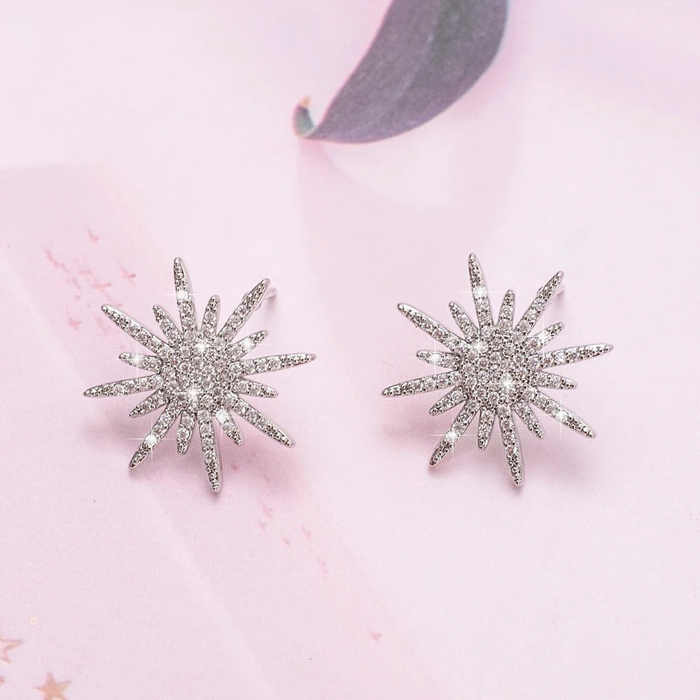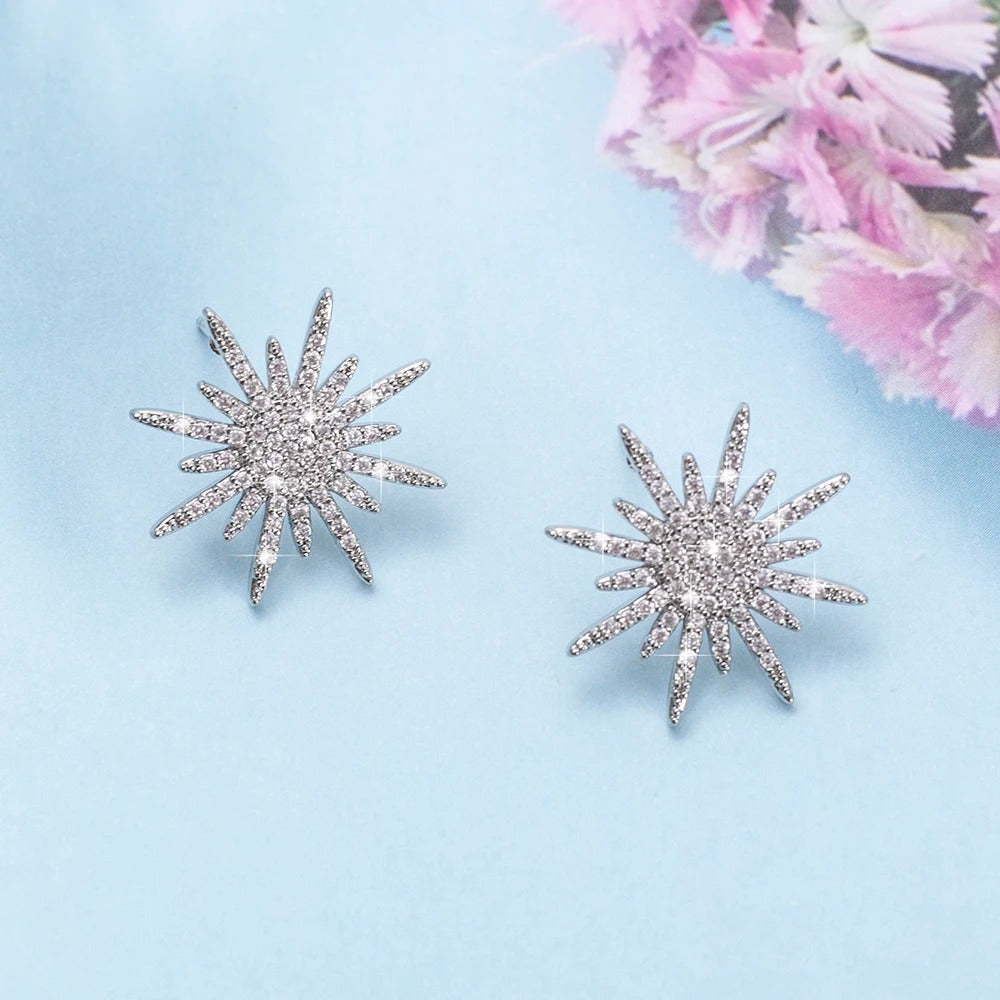 Este lindo brinco é feito de prata 925 e possui um design elegante com uma pedra cravejada no centro, lembrando os raios de sol. Com sua qualidade e estilo, este brinco é perfeito para adicionar um toque de brilho e sofisticação ao seu visual.