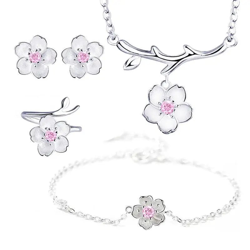 Este conjunto de flores de cerejeira em prata 925 (CONP803) é perfeito para adicionar um toque delicado e elegante ao seu visual. Feito com prata de alta qualidade, é uma escolha durável e sofisticada. Um belo presente para agradar alguém especial ou para se presentear.